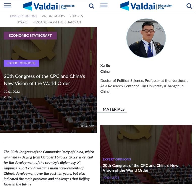 Professor Xu Bo Got His Article on the 20th CPC National Congress Spirit Published in Russia’s Top Think Tank “Valdai Club”