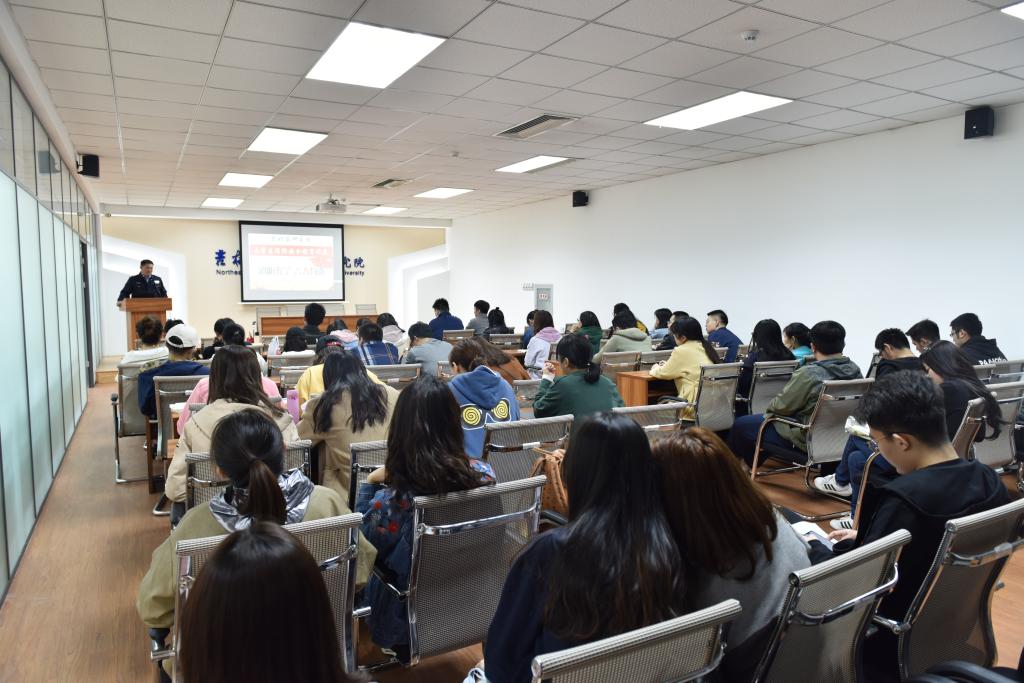 董老师从事消防战斗多年,实战经验丰富。首先他展示了火灾发生的过程以及产生的后果,火灾场景触目惊心,希望同学们能够引以为戒,避免火灾的发生,要有良好的防火意识。他还提出了几点加强安全管理的防火注意事项,在人员密集和聚集的场所,尤其是寝室和教学楼:1.禁止撕拉乱接电路,减少隐患。2.严禁使用电热壶、电热锅、电热板、酒精锅等热的快的电器。3.严禁在寝室吸烟。同时播放了一个火灾发生的视频短片,希望同学们能通过短片认识到防火的重要性。在视频中因使用热的快的电器,引起员工宿舍发生火灾。视频播放后他向同学们介绍火灾自救逃生的知识:1.熟悉周围环境和安全出口。2.扑灭小火,惠及他人。3.保持镇静、明辨方向,迅速撤离。4.不入险地,不贪财物。5.简易保护,蒙鼻匍匐。6.善用通道,莫用电梯。7.机智应变,固守待援。8.缓降逃生,滑绳自救。9.火已及身,切勿惊跑。