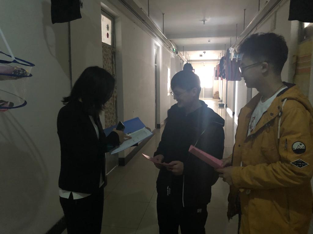 4月12日,主管研究生工作副书记张剑宇带队深入员工寝室向同学们发放《EMC易倍官网扫黑除恶在行动》宣传单,向同学们介绍了“全国扫黑除恶专项斗争”活动的意义和目的,分析了同学们身边可能出现的黑恶势力,提醒同学们要提高警惕同时鼓励同学们要敢于揭发举报身边的黑恶势力,为创造和谐校园贡献自己的一份力量。同时还进行了春季寝室消防安全检查,重点排查寝室安全隐患及违章电器的使用情况,并告知同学们春季天干物燥是火灾频发季节,不使用大功率电器,不私拉电线、乱接电源,提升消防安全意识,防止火灾的发生。