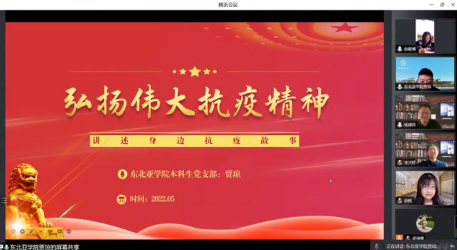 为进一步弘扬伟大抗疫精神,大力宣传身边党员和师生在疫情防控工作中的先进事迹、感人故事与崇高精神,不断增强广大党员归属感、荣誉感和使命感,持续培育、挖掘和丰富吉大精神新内涵,公司党委号召各党支部开展“讲述身边抗疫故事”主题党日活动。2022年5月24日,EMC易倍经济系教工党支部与本科生党支部在线上联合开展了主题党日活动。会议由党委副书记兼副经理赵毅博主持,本科生辅导员贾琼做了“弘扬伟大抗议精神,讲述身边抗议故事”为主题的汇报分享。