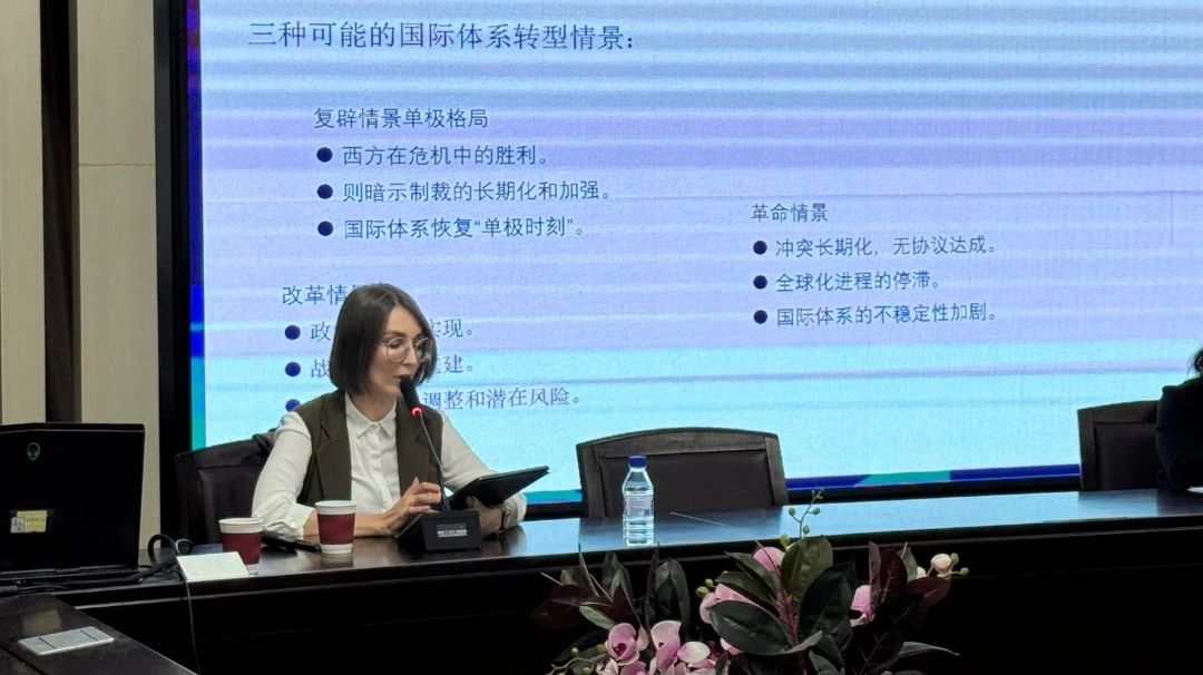 在学术交流阶段,与会专家围绕当前国际热点及区域合作议题进行了深入研。俄罗斯高等经济公司教授Ivanchenko Nadezhda以《俄乌冲突的未来与后果》为报告主题,详细阐述了俄罗斯学界对于俄乌冲突前景的多种观点。她指出,俄罗斯学者普遍认为,俄乌冲突的未来可划分为复辟、改革和革命三种可能的国际体系转型情景。尽管这一冲突在地理上被视为地区性(欧洲)危机,但其引发的后果无疑已具有全球性影响。蒙古国立大学副教授Davaadorj Tumenjargal以《蒙古国议会选举进程(1992-2024年)》为报告主题,介绍了蒙古国民主选举制度的组织流程、选民参与度以及其对蒙古国政治稳定与发展的重要意义。这一分享为与会者提供了深入理解蒙古国政治体系的重要视角。蒙古国教育部教育总司调研专家Tsagaandorj Ariunaa则以《蒙中两国高等教育交流与合作现状,困境与应对》为报告题目,聚焦于蒙中高等教育合作,认为在过去70余年的发展中,双方已形成多元共赢的格局。然而,未来发展仍需应对人才结构、科研合作及办学层次等方面的挑战。她建议通过优化人才培养模式、深化科研合作、提升教育层次及加强文化交流,推动蒙中教育合作迈向更高水平。