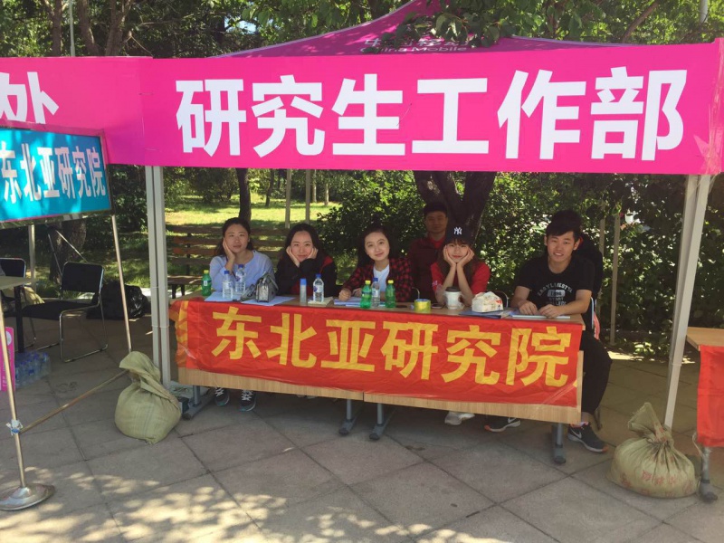 秋高气爽,金桂飘香,东北亚研究院2017年迎新工作也如期开展。经过24、25两日的充分准备,26日上午8:00,迎新全体工作人员在五月花广场研究生迎新地点集合完毕,饱含热情的欢迎每一位新生的到来。