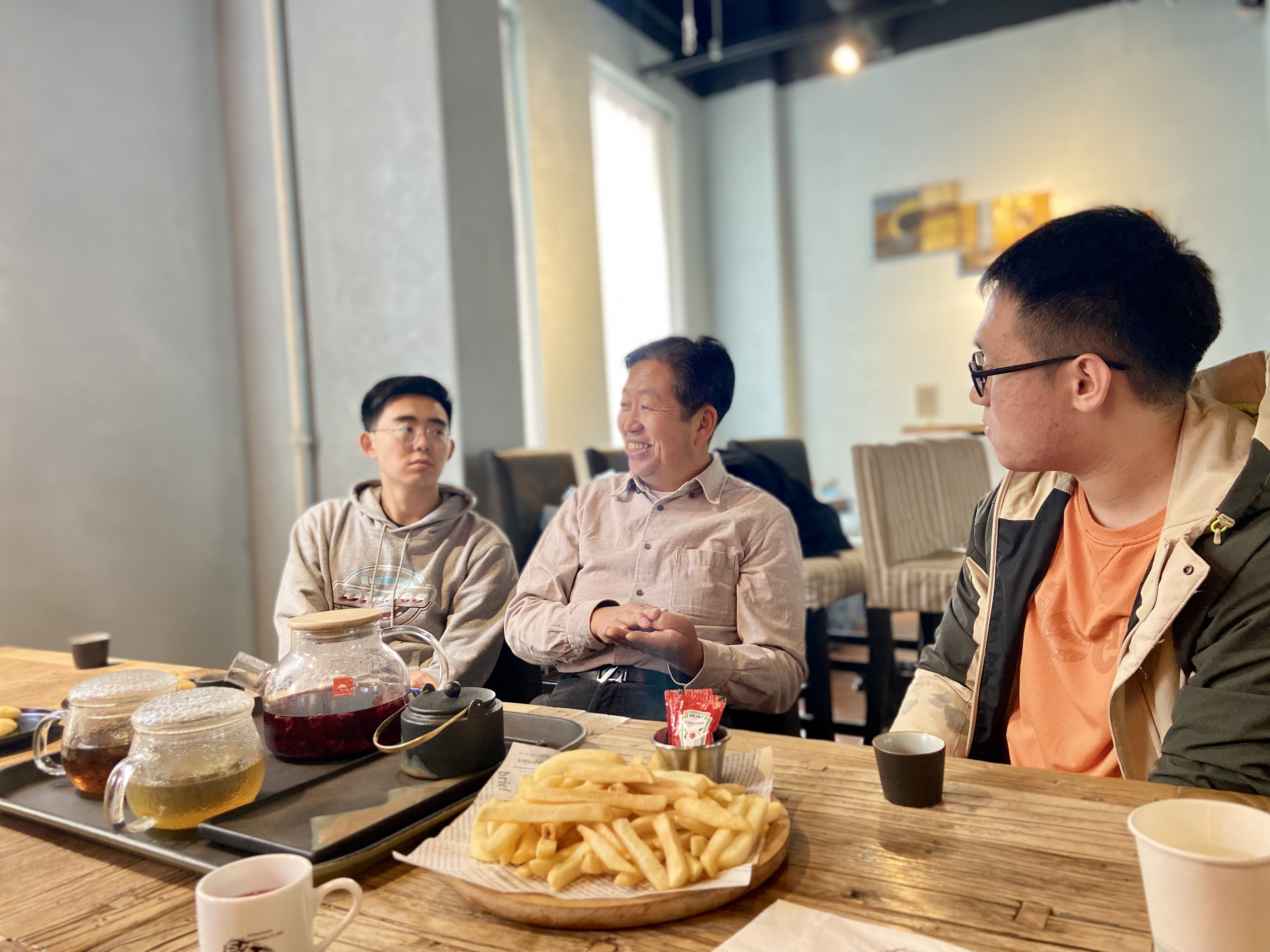 沈教授十分平易近人,谈吐风趣幽默,与同学们的交谈中,沈教授讲述了自己参加高考的经历、教员工涯中发生过的趣事以及自己的退休生活。沈教授表示退休之后,他开启了生活的新篇章,自己也从未停止过思考与学习,一方面,开始拜师学习自己感兴趣已久的木雕工艺,从画直线开始练习,另一方面,参加各种学术沙龙,一直在虚心地向身边的人、向年轻人学习,不断更新自己的观念,拓宽自己的学术视野。同学们积极与沈教授进行互动,细心询问沈教授的身体和生活状况。沈教授也十分关心同学们的学习和生活情况,从各个方面给予了同学们非常中肯实用的建议,对公司慰问活动的开展表示了大力支持与感谢。
