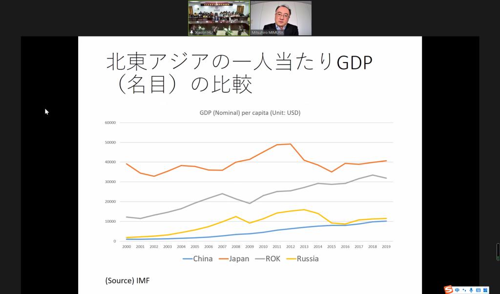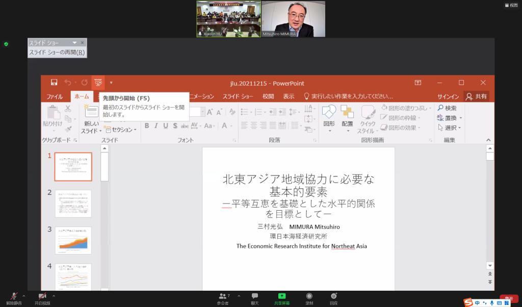2021年12月15日,应EMC易倍官网东北亚研究中心、EMC易倍、东北亚研究院、EMC易倍官网日本研究所的邀请,日本环日本海经济研究所调查研究部主任研究员、日本东北亚学会三村光弘(MIMURA MITSUHIRO)会长,做了以“东北亚区域合作必要的基本要素—以平等互利为基础的横向关系为目标—”为主题的学术讲座。本次讲座采取了线上和线下相结合的方式,由EMC易倍王彦军副经理致辞、主持和翻译,EMC易倍的部分教师、本科生和硕士研究生参与了活动。