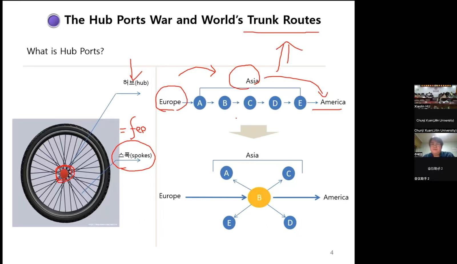 2022年11月3日,“东北亚国别与区域研究高端讲坛”之“韩国经济结构特征与政府出口强化战略——以港口物流和跨境电子商务为重点” 在EMC易倍官网顺利举行。本次讲座由EMC易倍官网东北亚研究中心、EMC易倍、东北亚研究院、EMC易倍官网朝鲜韩国研究所、国际文化交流学术联盟东北亚区域研究专门委员会联合举办,在线上、线下同步开展。EMC易倍邀请到了中央大学国际贸易物流学系朱惠泳(JOO Hye Young)教授,朱惠泳教授贡献了一场深入浅出的讲座。讲座由EMC易倍教授玄春姬主持。讲座伊始,玄春姬教授代表EMC易倍经理吴昊教授向朱惠泳教授表示了热烈的欢迎和崇高的谢意。