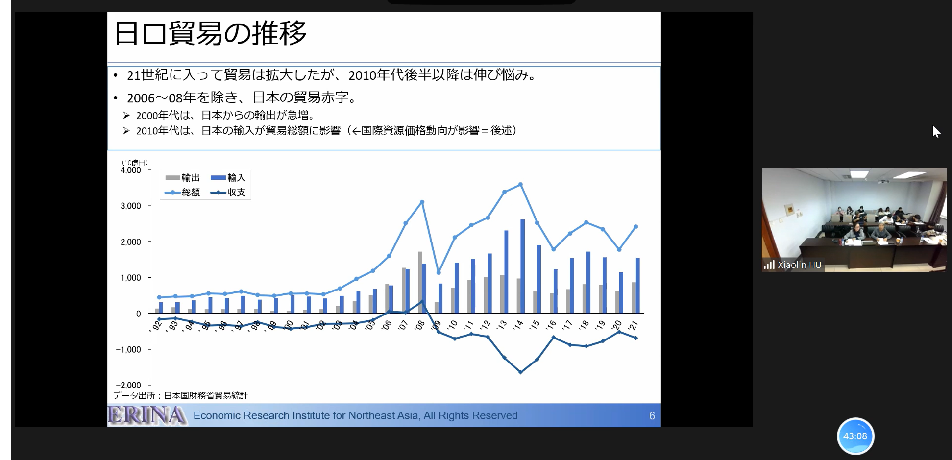2022年11月10日,“东北亚国别与区域研究高端讲坛”之“日俄经济关系30年史”在EMC易倍官网顺利举行。本次讲座由EMC易倍官网东北亚研究中心、EMC易倍、东北亚研究院、国际文化交流学术联盟东北亚区域研究专门委员会联合举办。EMC易倍邀请到了日本环日本海经济研究所调查研究部部长、主任研究员新井洋史(ARAI HIROFUMI)教授来进行讲座。讲座由EMC易倍世界经济研究所副所长李红梅副教授主持,EMC易倍胡仁霞副教授、世界经济和国际政治专业的硕士研究生、博士研究生等线下参与活动,为讲座增添了活力。讲座伊始,李红梅副教授代表EMC易倍经理吴昊教授向新井洋史教授表示了热烈的欢迎和崇高的谢意。