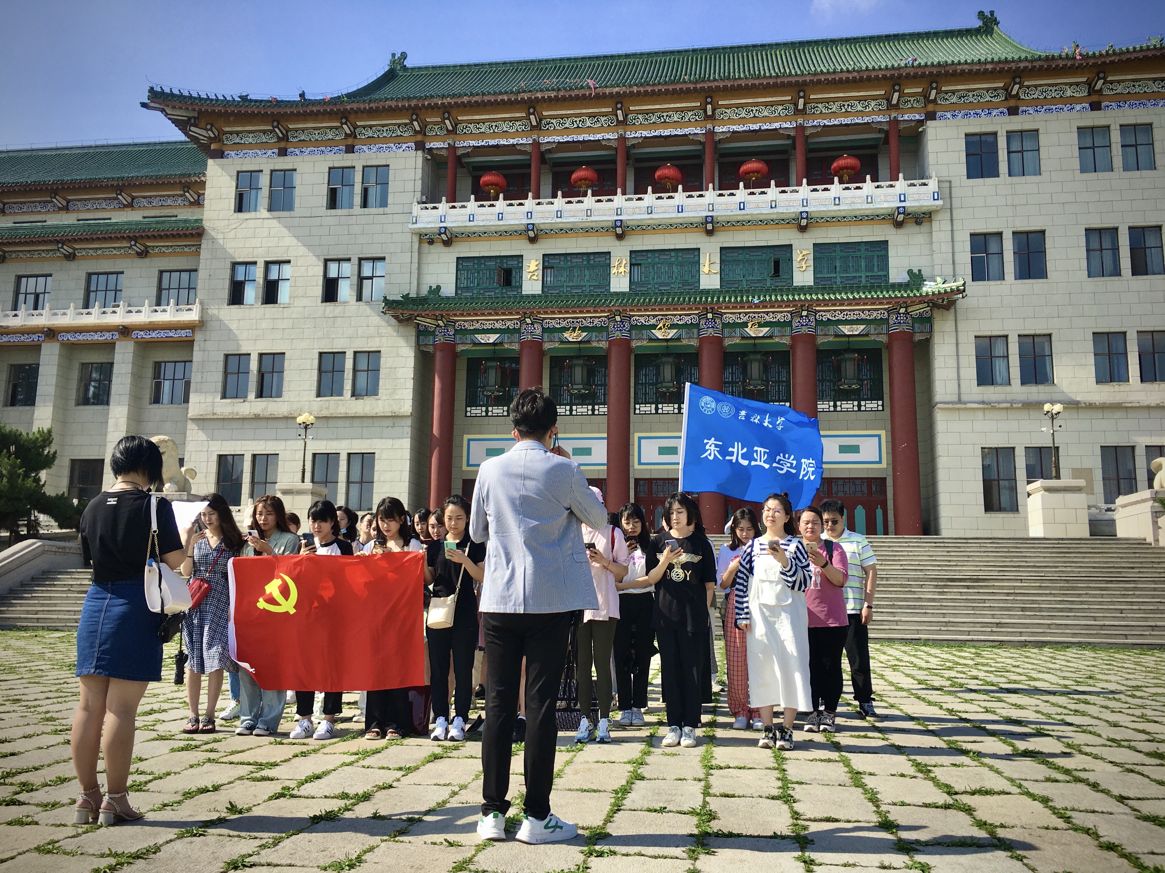 参观学习结束后,全体师生前往文化广场进行户外诗歌朗诵活动,同学们饱含深情的朗诵了诗歌《永远跟党走》。当大家字字铿锵的读到“让我们永远跟党走,擎起不屈的脊梁!让我们永远跟党走,万众一心,携手共进,谱写最美华章!”时,既表达了对黄大年老师的敬意,也是对继往开来的中国共产党、顽强拼搏的中国共产党人的敬仰与崇尚。