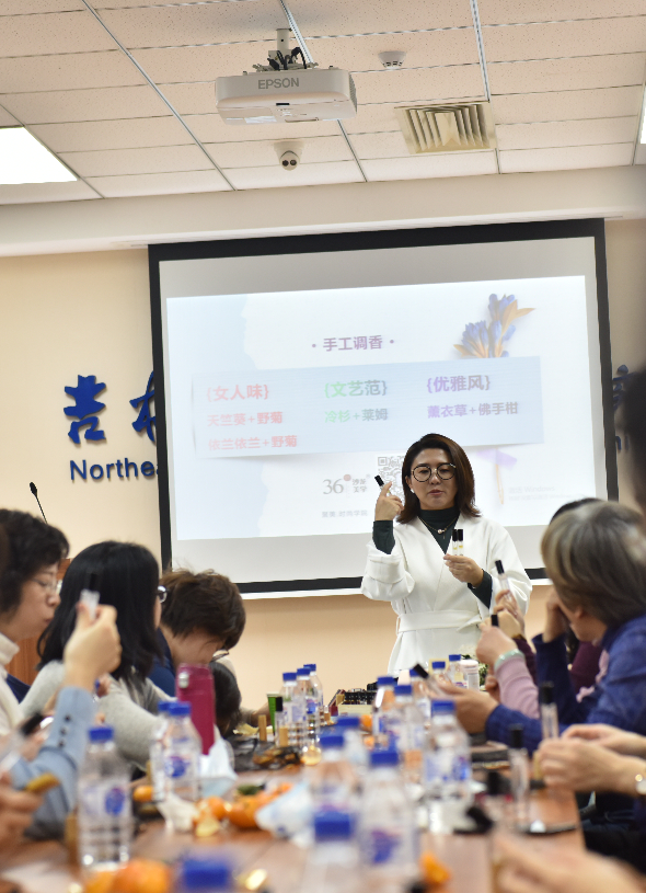 为促进女教职工的身心和谐,提升幸福感和获得感,帮助女教职工释放压力、舒缓心情,10月30日上午,东北亚研究院妇委会邀请国际芳疗师、精油养生专家聂新林老师来院对精油的芳疗养护知识进行专题指导。公司女教职工20余人参与了学习与互动,活动由院妇委会主任赵毅博主持。
