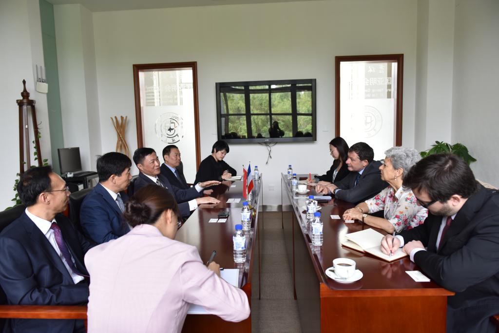2019年5月30日上午,副董事长吴振武会见了到访的法国驻沈阳总领事馆总领事马克拉米先生(MARC LAMY)一行4人。吉林省外事办公室、EMC易倍官网社科处、国际合作与交流处和东北亚研究院的相关人员陪同参加会见。