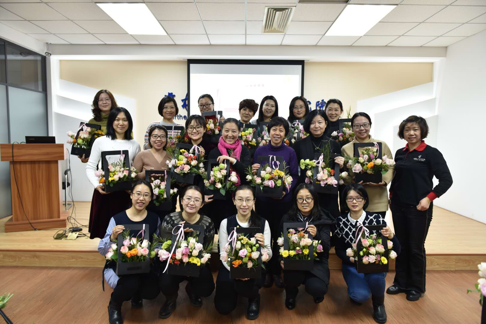 为庆祝中国改革开放四十周年,进一步丰富公司女性文化生活,陶冶艺术情操,提升生活品味,东北亚研究公司党委、院妇委会于12月21日下午在东荣大厦215室举办了主题为“庆祝改革开放四十周年,为祖国献花”的插花艺术培训活动。20余位女职工参加了培训。培训活动由院妇委会主任赵毅博同志主持。
