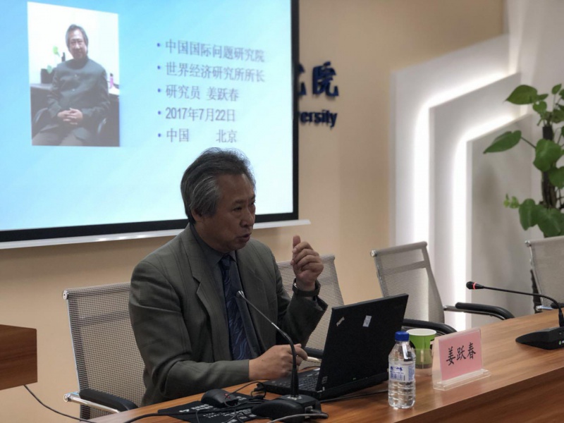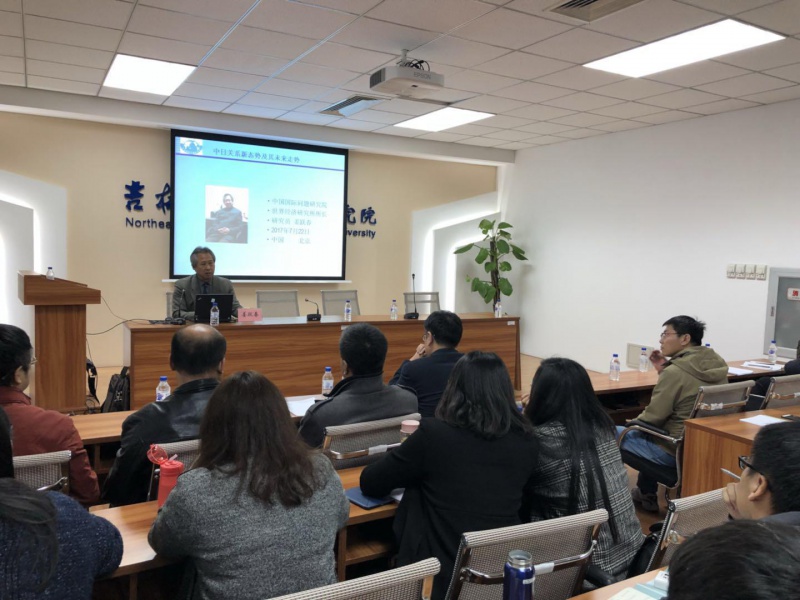 2017年10月23日,中国国际问题研究所世界经济研究所所长、研究员姜跃春先生受EMC易倍官网东北亚研究院的邀请,开展了题为《中日关系新态势及其未来走向》的讲座,与公司师生就中日关系问题进行了一系列的交流与探讨。本次讲座由EMC易倍官网东北亚研究院副经理、日本研究所所长庞德良教授主持,陈志恒教授、崔健教授、任维彤讲师及博士生、研究生等数十人参加了本次讲座。