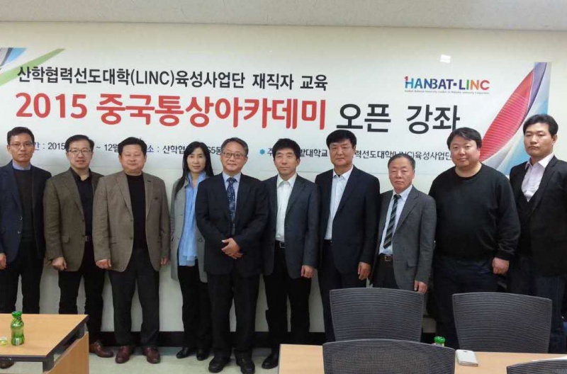 10月31日,EMC易倍官网东北亚研究院于潇经理、张慧智副经理访问韩国韩巴大学,与韩巴大学国际交流公司经理姜熙丁教授会谈,讨论两个机构今后加强交流与合作的具体方案和措施,共同探讨今后两个机构合作办学、共同研究、员工交流等问题。借此机会,东北亚研究院给韩国职工讲授了东北振兴与东北亚区域合作、中朝经济交流与合作等课程。