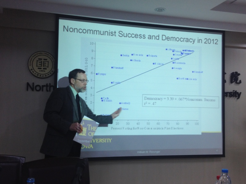 爱荷华大学是美国著名的国家级研究型大学,其在政治学,商学,文学等人文社会科学领域取得的成就在全美及世界享有盛誉,是美国公认的“公立常春藤大学”之一。威廉·瑞辛格教授美国爱荷华大学政治系终身教授,美国政治学会和斯拉夫与东欧研究会成员。2003—2008年曾任爱荷华大学主管外事副教务长(副董事长),国际项目主任。2010—2012年任爱荷华大学政治系主任,2012年 至今任美国富布赖特项目委员会委员,爱荷华市外交事务委员会委员。主要从事俄罗斯政治与外交政策,前苏联地区国别政治,比较政治学等方面的研究。是美国著 名的俄罗斯问题专家和比较政治学专家。此次访问公司期间,瑞辛格教授为公司师生举行了两场精彩纷呈的学术报告,受到广大师生的热烈欢迎。
