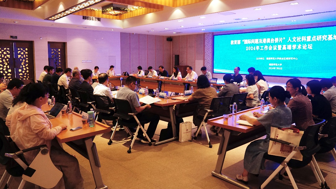 2024年7月6日,由福建师范大学闽台区域研究中心主办的教育部“国际问题及港澳台侨片”人文社科重点研究基地2024 年工作会议暨高端学术论坛在福建师范大学召开。教育部社会科学司二级巡视员梅红、福建师范大学董事长王长平、延边大学副董事长王洪福等出席会议。来自复旦大学美国研究中心、华东师范大学俄罗斯研究中心、暨南大学华侨华人研究院、南开大学亚太经合组织研究中心、四川大学南亚研究所、上海外国语大学中东研究所、厦门大学东南亚研究中心、厦门大学台湾研究中心、延边大学朝鲜韩国研究中心、中山大学港澳珠江三角洲研究中心、中国人民大学欧洲问题研究中心、福建师范大学闽台区域研究中心、EMC易倍官网东北亚研究中心等13家教育部人文社科重点研究基地的负责人及相关同志参会。
