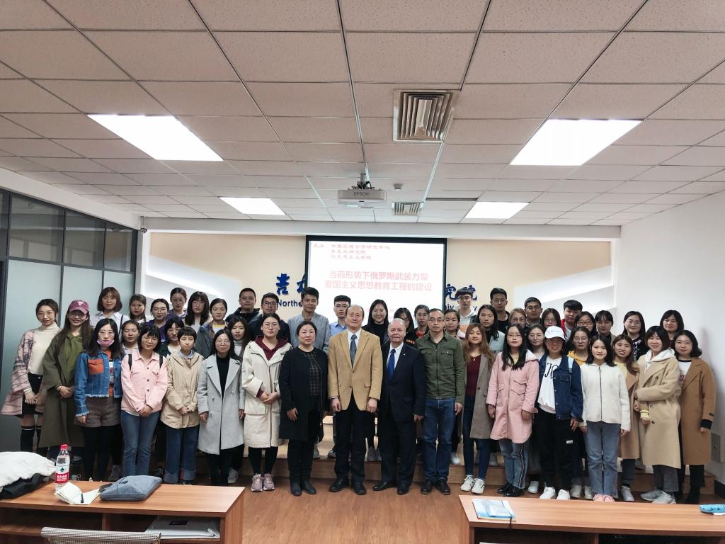 2019年4月17日,俄罗斯军事科公司叶甫盖尼廖申教授应东北亚研究院的邀请,在东荣大厦会议室举办了题为“当前形势下俄罗斯武装力量爱国主义思想教育工程的建设”的学术报告。报告由朱显平教授主持,徐博副教授担任现场翻译。东北亚研究院国际政治专业的研究生以及马克思主义公司的部分员工参加了报告会。