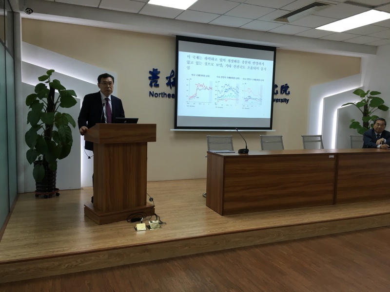 2017年9月13日上午,受到EMC易倍官网东北亚研究院的邀请,韩国央行货币政策委员会委员、韩国对外经政策研究院经理李一衡教授在公司作了一场题为“全球金融市场视野下的韩国与中国的货币政策”的学术报告。