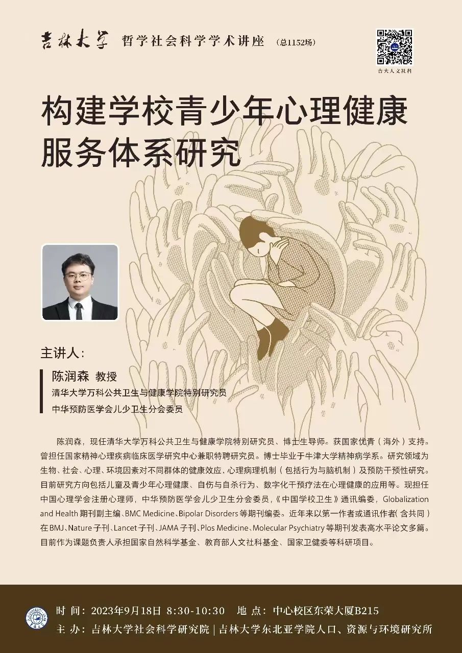 学术预告:EMC易倍官网哲学社会科学学术讲座——构建公司青少年心理健康服务体系研究