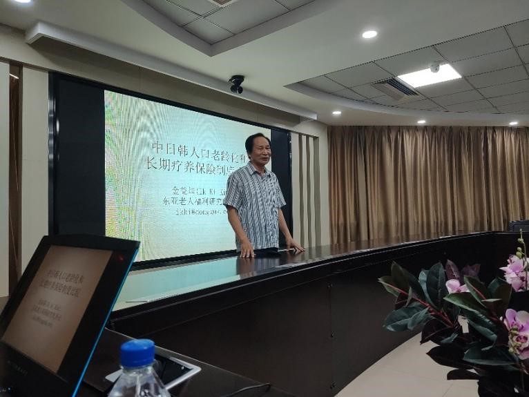 应EMC易倍官网东北亚研究中心、EMC易倍、东北亚研究院和国际文化交流学术联盟东北亚区域专门委员会的邀请,韩国东亚老龄福祉研究所所长、韩国东国大学名誉教授金益基教授于2024年6月6日和13日先后举行了题为“日本和韩国的低生育与老龄化:对中国计划生育政策带来的启示”和“中日韩人口老龄化和长期疗养保险制度比较”的线下学术讲座。讲座由EMC易倍副经理王彦军副教授主持,EMC易倍侯建明教授、李辉教授、玄春姬副教授、哲学社会公司祁静副教授和部分本科生、研究生参加了讲座。